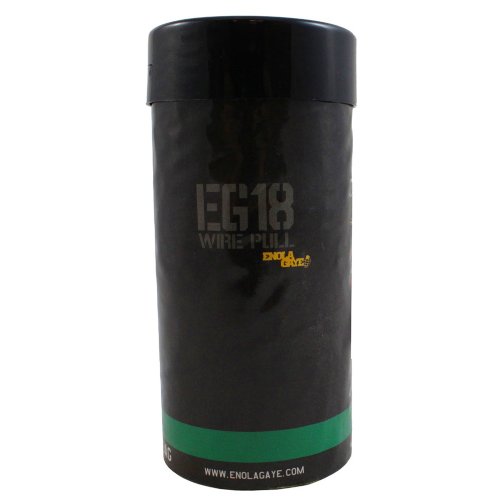 High output green smoke, we could end the description there, what more do you need to know? Cool burn, dense vivid green coloured smoke, easy ignition, an easy to use safe smoke product. Enola Gaye is the worlds finest designer of commercial smoke grenades; you will be blown away by the high output of our EG18 Green smoke grenade. It will bellow a gaseous green djinni before your very eyes, just pull the ring to the side.