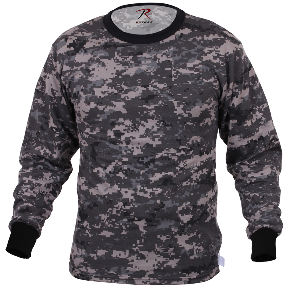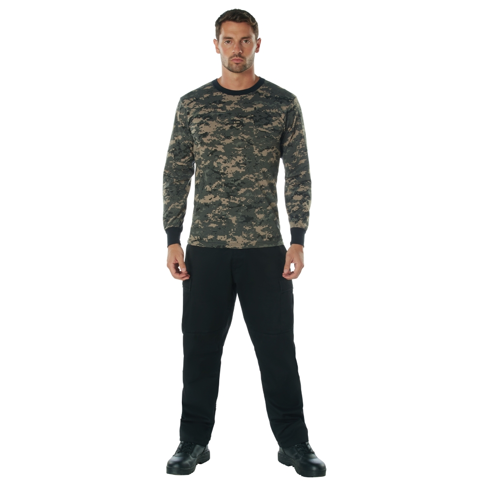 Long Sleeve Digital Camo T-Shirts feature a Cotton / Polyester blend and are available in various sizes