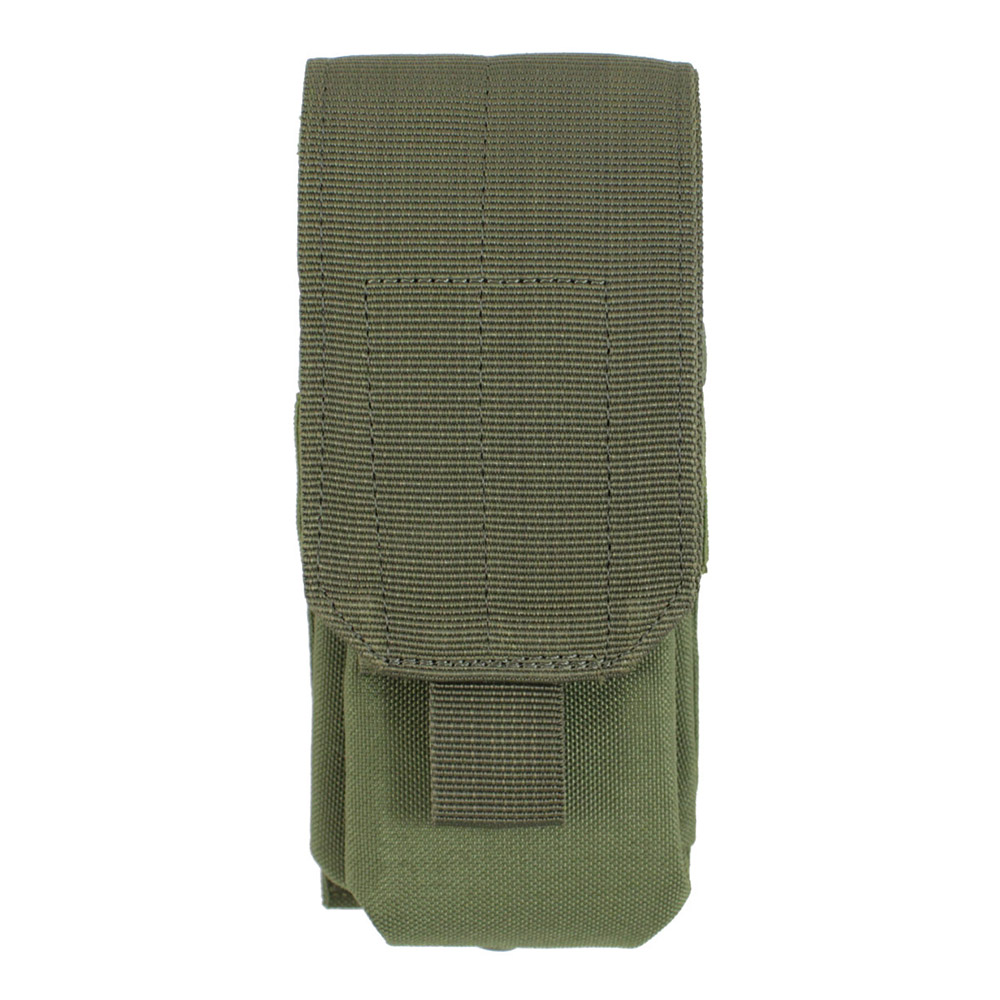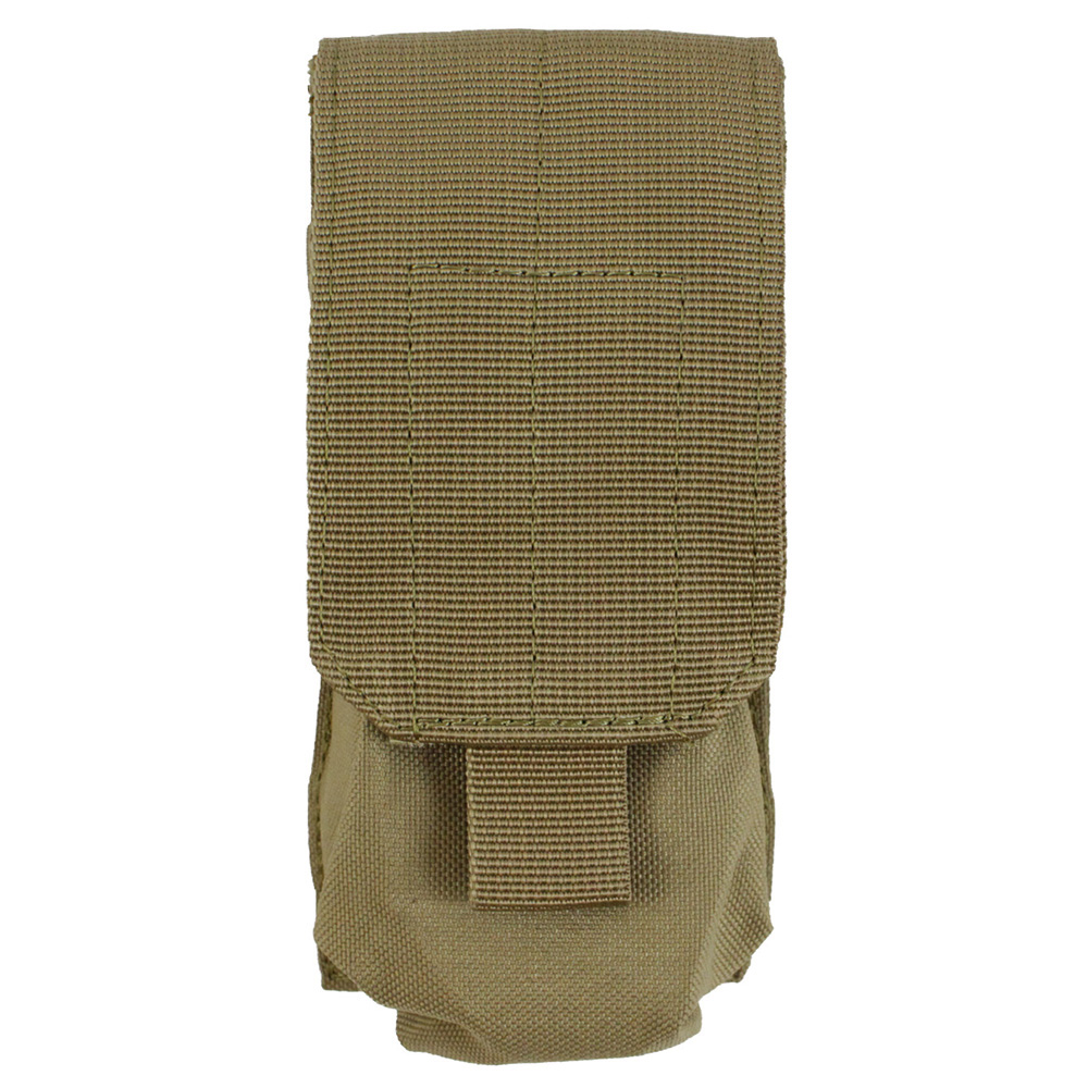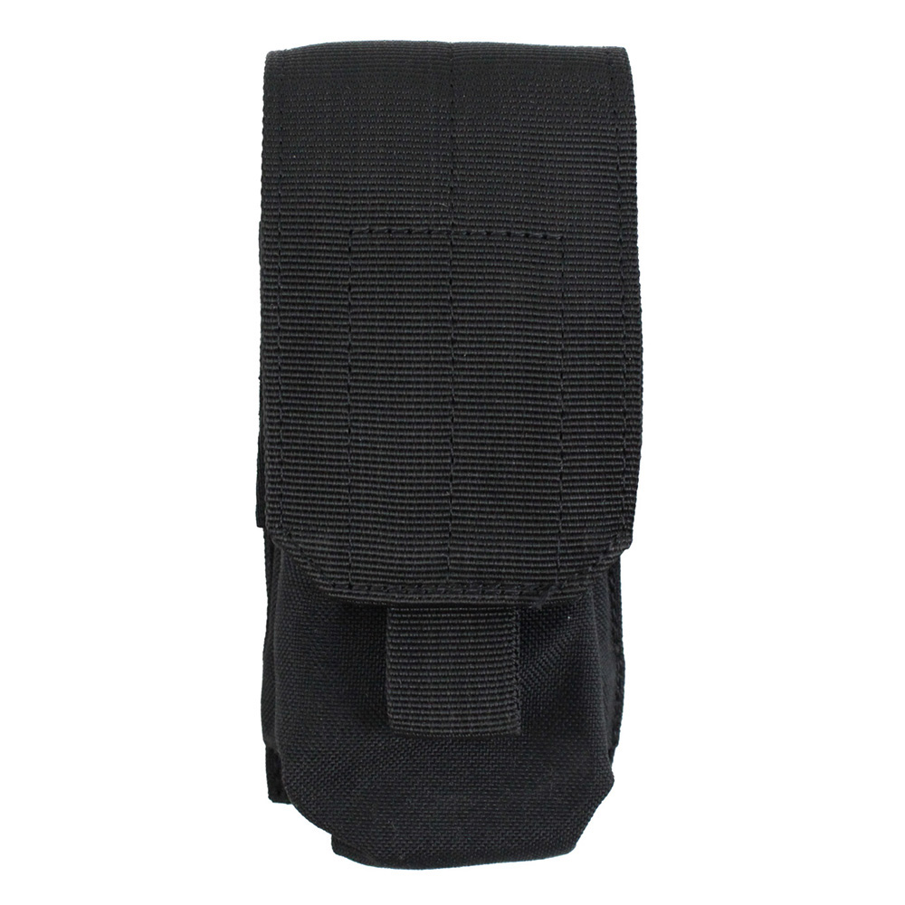 This Raven X magazine pouch can hold two M4 or M16 magazines. The pull tab covers is height-adjustable and uses a hook and loop fasteners. Snap button PALS straps on the back allow the pouch to be attached to MOLLE compatible gear.