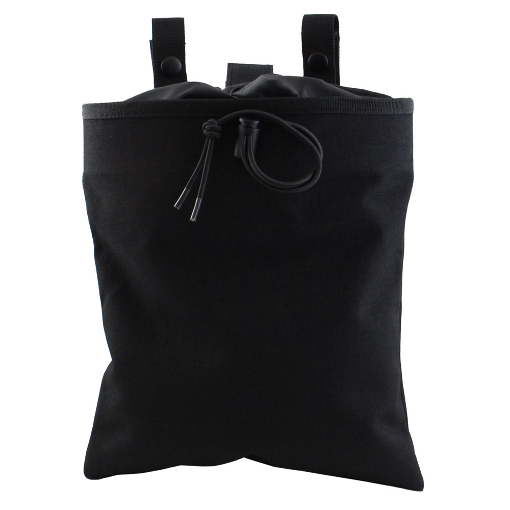 This Raven X Dump Pouch packs a lot of storage in a small amount of space. It folds up tight with a hook and loop tab when not in use, then unfurls into a massive utility bag to store spent magazine, loose ammo, and assorted gear. It can be fastened to pistol belts or MOLLE bags and vests using the two button clasps. This tactical black model is covert and low-profile.