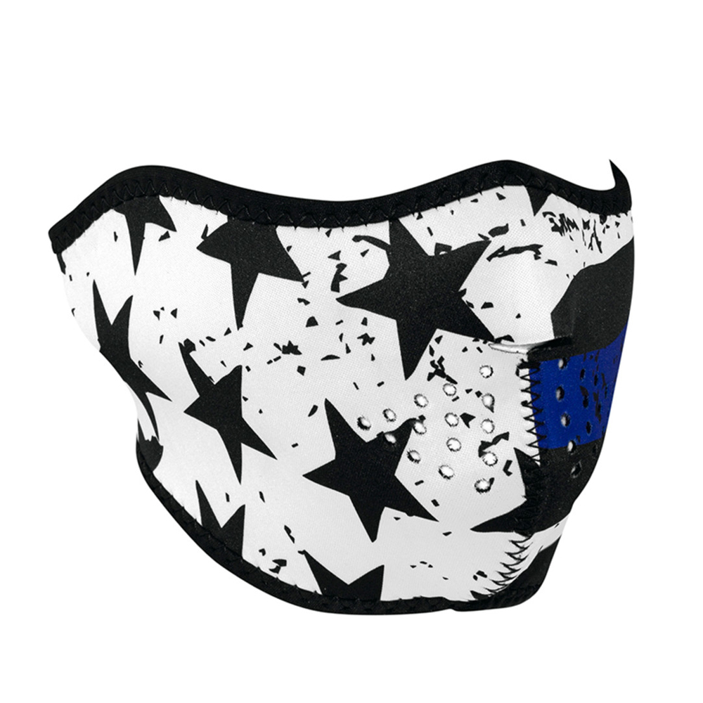 Designed for all of our heroes in blue, the Thin Blue Line Half Face Mask is meant to honour the protectors of the peace who keep our streets safe. This mask is made of durable neoprene material and comes with a hook and loop closure for a comfortable fit. The mask is reversible to black material. One size fits all.